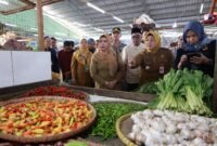 Cisoka — Wakil Bupati Tangerang Intan Nurul Hikmah melakukan pemantauan harga dan ketersediaan bahan pangan pokok di Pasar Cisoka, Kabupaten Tangerang, Senin (16/3). Pemantauan…