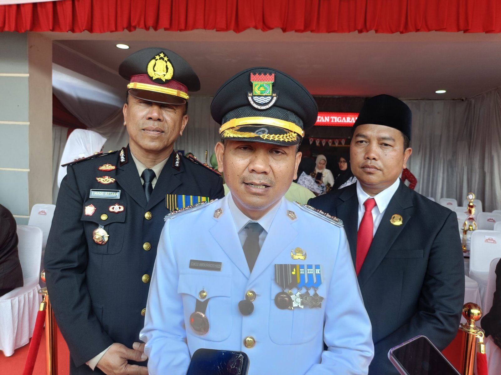 Camat Tigaraksa Cucu Abdurrosyied  (tengah) sesuai pelaksanaan upacara peringatan HUT Ke-80 RI. (Foto: Dok. Istimewa)